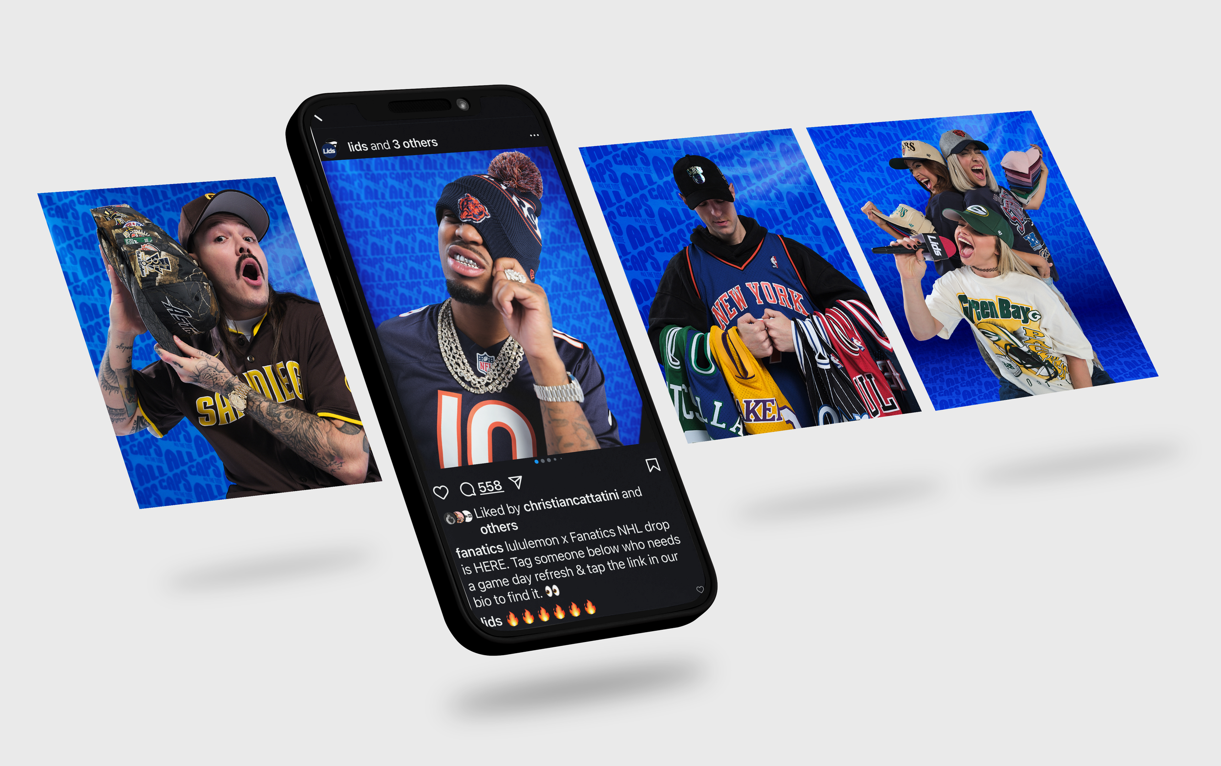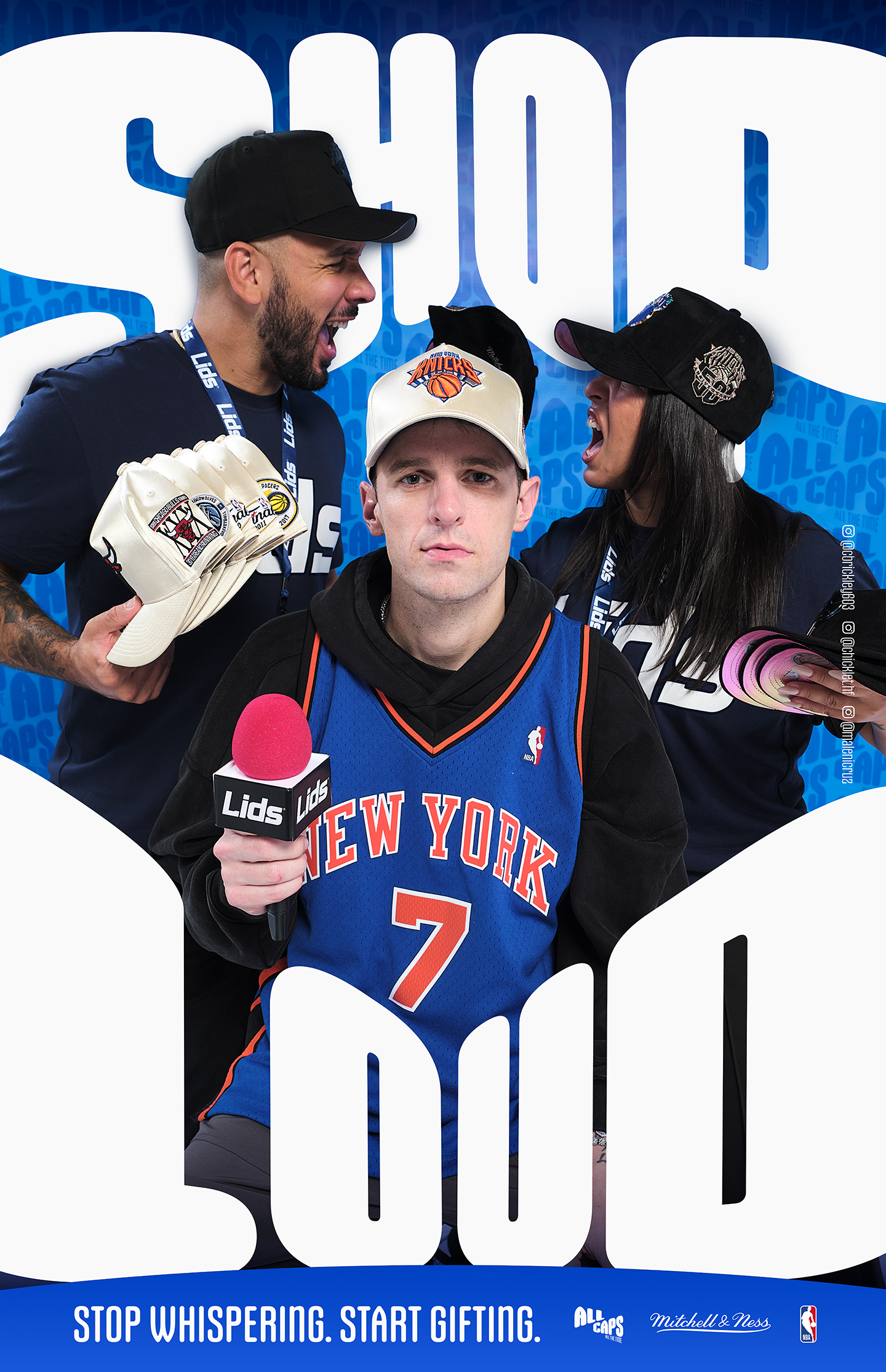 A high-energy motion series built for Lids retail displays, designed to push the ALL CAPS, ALL HOLIDAY identity into full movement across store environments.